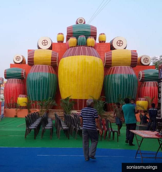 A pandal created out of drums -Pujo 2017