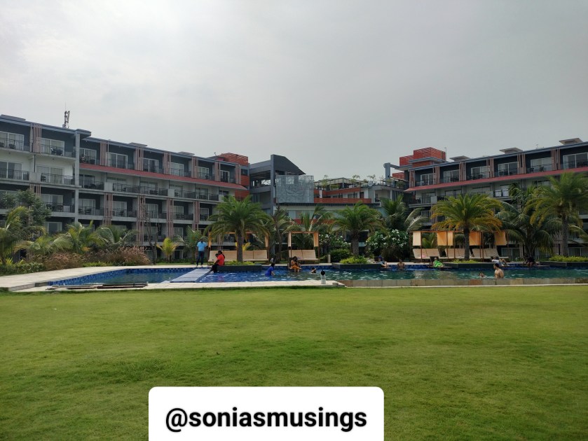 The kid had a great time after coming back to the hotel as the vast stretches of land, play zone, and swimming pool gave him umpteen options to enjoy himself. He ran around, experimented with various areas to try new games, and got into the pool with his father.
