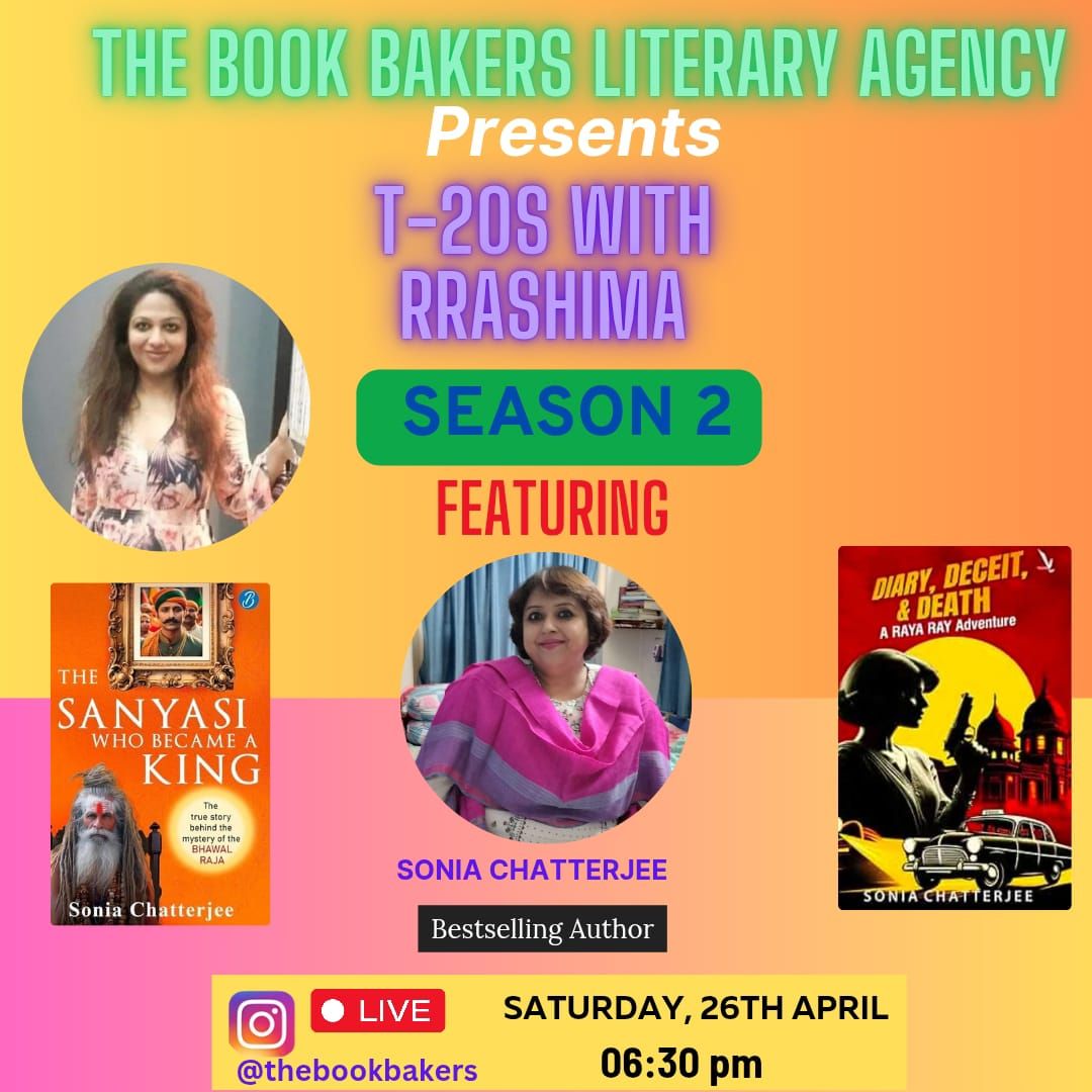 Hello! Please join us for an intriguing and engaging session on 26th April, Saturday evening at 6:30 p.m. on The Book Bakers Instagram page (@thebookbakers) where I discuss books, writing, my journey and many other things with best selling author Rrashima Verma.