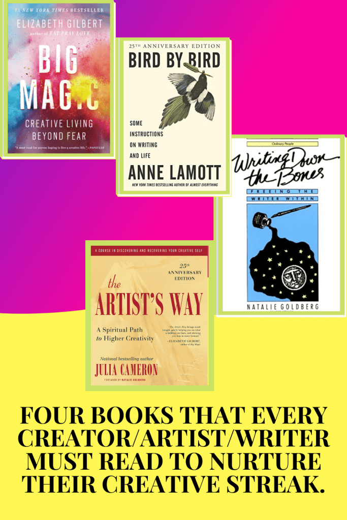 The acceptance of a first pitch is quite special. Blogchatter selected my pitch on four life-altering books that I feel every creator/artist/writer must read to nurture their creative streak. I wrote this post straight from the heart while recovering from a ligament tear in my left knee. The past three weeks were difficult as I struggled at every small step (literally and metaphorically). I’m grateful for the company of books by Anne Lamott, Elizabeth Gilbert, Natalie Goldberg, and Julia Cameron. I hope creators/writers find value in these words.