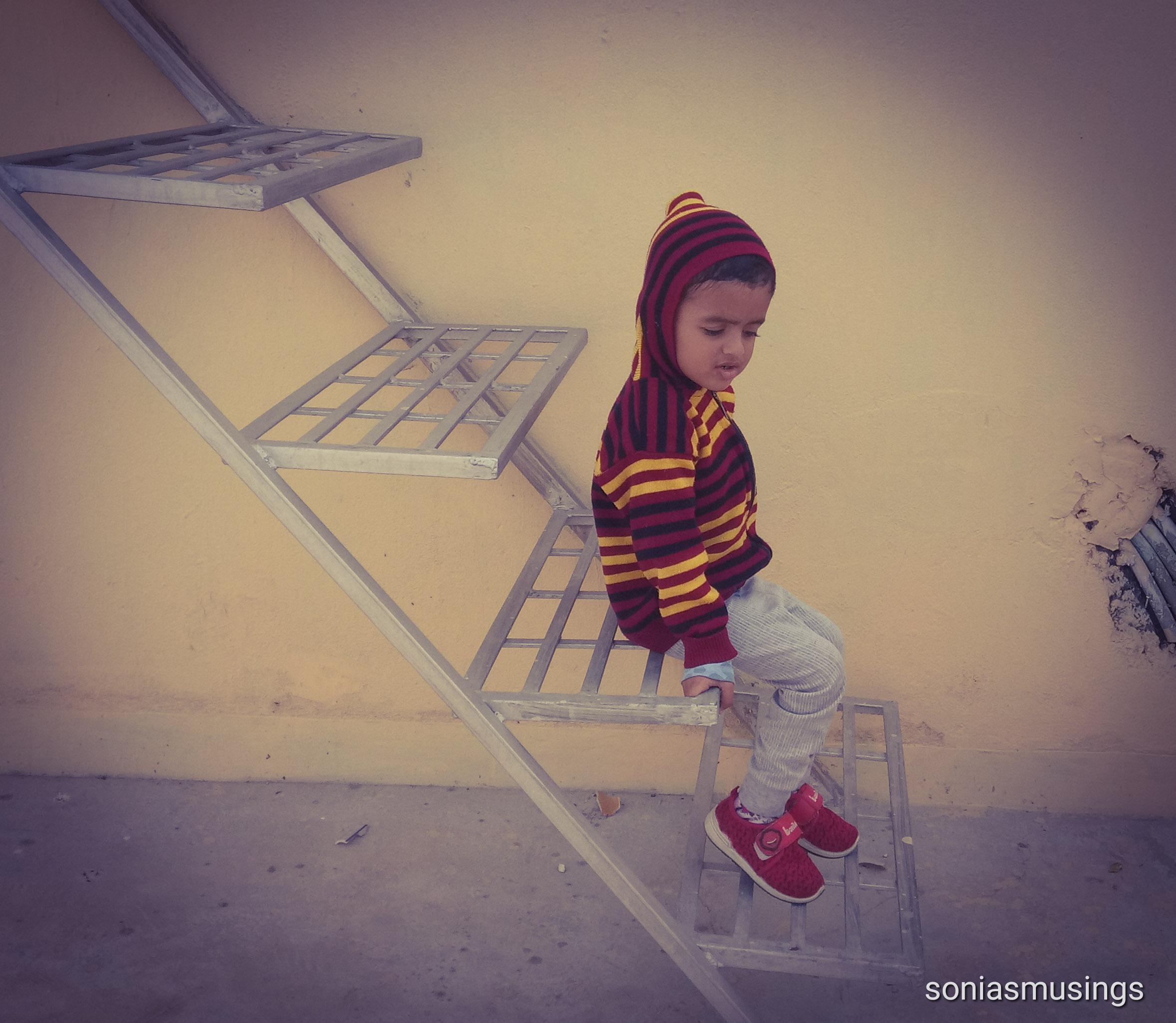 Previous Image Next Image Pause and observe – I have imbibed these from him At the terrace of our apartment complex, he sits down to pause and observe
