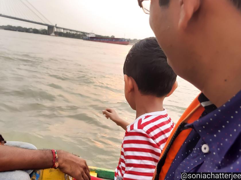 When we left St. Paul’s Cathedral after covering Birla Planetarium and lunching at Peter Cat, the watch showed 4:30 p.m. The kid wanted us to stop at Maidan to play football, a ritual we followed on most weekends during winter. But we had a different plan in mind and convinced him to a fun ride at a destination new to all of us. We reached Prinsep Ghat, the favorite spot of every movie director depicting Kolkata on the big screen (remember ‘Parineeta’?)
