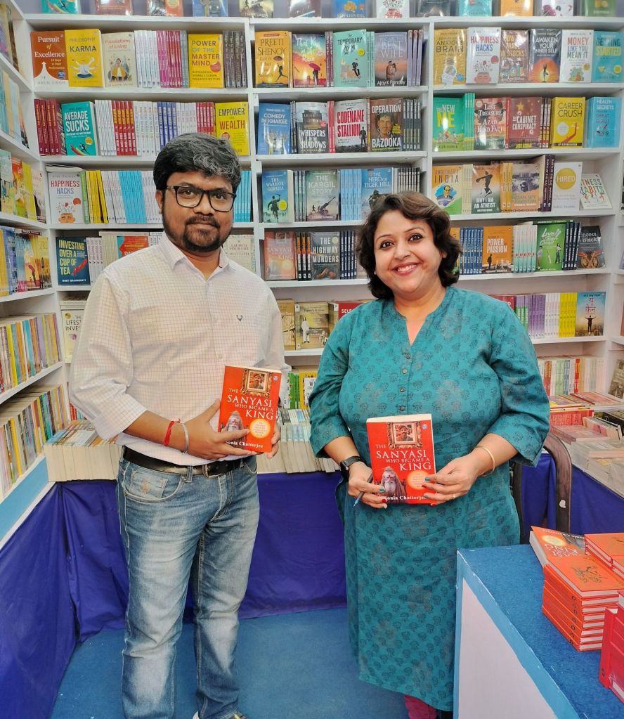 My next destination was The Storyteller stall E-39. Anwesh, who I had met during the previous event at The Storyteller bookstore had come to get an author-signed copy of ‘The Sanyasi who became a King’. Signed some copies of this book and ‘Diary, Deceit and Death’. Mayura, the owner of The Storyteller, made the experience so warm and welcoming. Thank you Vishal Sir and Uttam Dada of Vishwakarma Publications for arranging this.