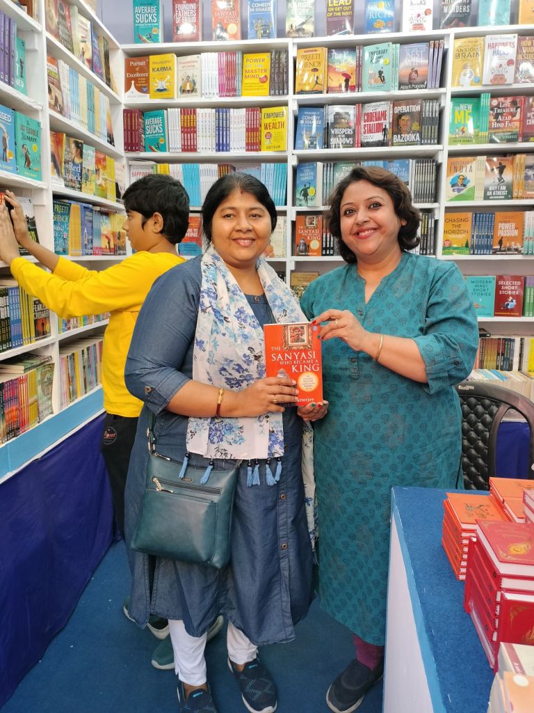 But it was a pleasant surprise when Basubhadra dropped in with her family to buy an author signed copy of ‘The Sanyasi who became a King’ for gifting. I know it’s her second copy of this book, so a tight hug to you, Rhea. After 33 years, Anupriya Banerjee Misra chose the book fair as the perfect venue for a reunion. Thank you for picking up both my books.